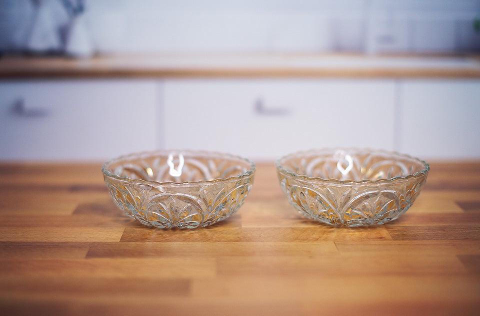 These shallow, wide pressed glass bowls feature an intricate starburst design that shimmers beautifully in the candlelight. Each is custom-poured to order with two wicks for an even, radiant burn.